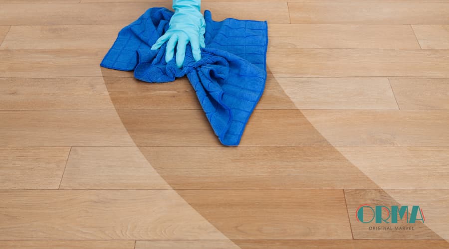 - يفرك السطح بقطعة من القماش المبللة قليلًا جيدا حتي يتم ازالة البقع.