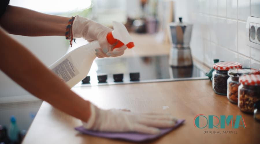 لذلك عليك المداومة على التنظيف المستمر، عن طريق الاستعانة بفوطة تنظيف ناعمة الملمس لإزالة الأتربة أولًا، ثم وضع القليل من الماء في وعاء عميق، مخلوط بالقليل من ملمع ومنظف الأخشاب ومسح الأسطح بالكامل بفوطة نظيفة بعد غمسها في الخليط، وعصرها جيدًا للتخلص من الماء الزائد.